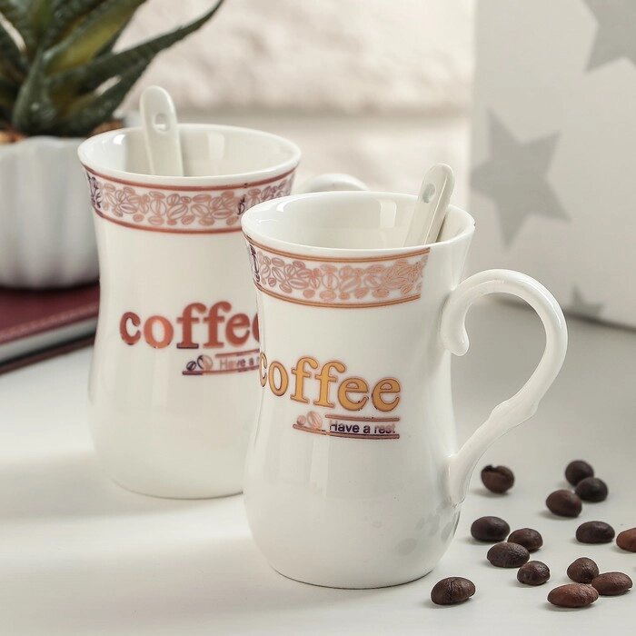 Кружка «Кофе», 100 мл, с ложкой, рисунок МИКС