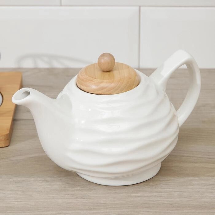 Набор чайный «Эстет» на деревянной подставке, 5 предметов: чайник 1 л, 4 кружки 150 мл