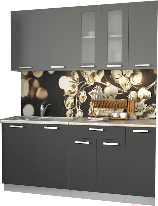 Кухонный гарнитур Интерлиния Мила 17 (антрацит/серебро)