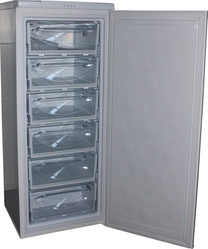 Морозильный шкаф; электромеханическое управление; количество отделений 6; мощность замораживания 14 кг/сутки; количество компрессоров 1; цвет серебристый.