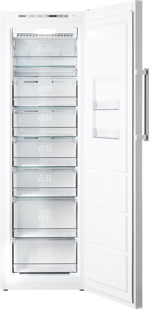 Морозильный шкаф; электронное управление; класс энергопотребления A; полезный объем 245 л; количество отделений 8; мощность замораживания 13 кг/сутки; количество компрессоров 1; система No Frost ; режим суперзаморозки; цвет серебристый.