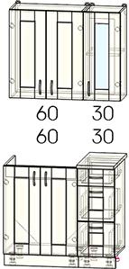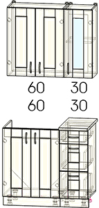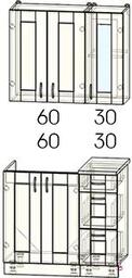 - Глубина нижних шкафов 60 см (46 см - глубина по корпусу)