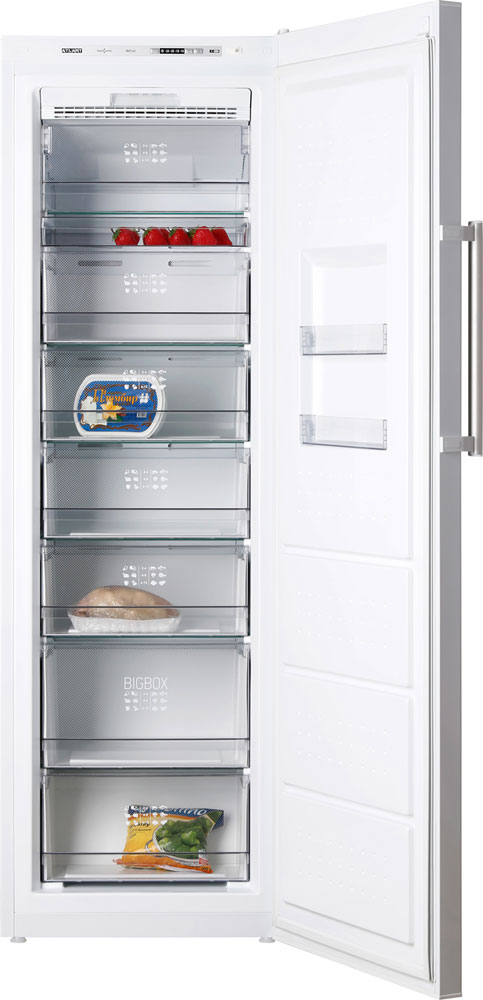 Морозильный шкаф; электронное управление; класс энергопотребления A; полезный объем 245 л; количество отделений 8; мощность замораживания 13 кг/сутки; количество компрессоров 1; система No Frost ; режим суперзаморозки; цвет мокрый асфальт.