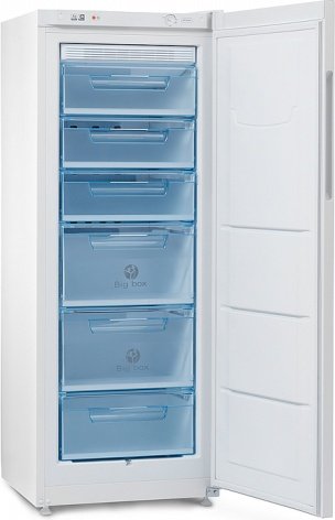Морозильный шкаф; электромеханическое управление; класс энергопотребления A; полезный объем 228 л; количество отделений 6; мощность замораживания 9 кг/сутки; количество компрессоров 1; система No Frost ; режим суперзаморозки; цвет белый.