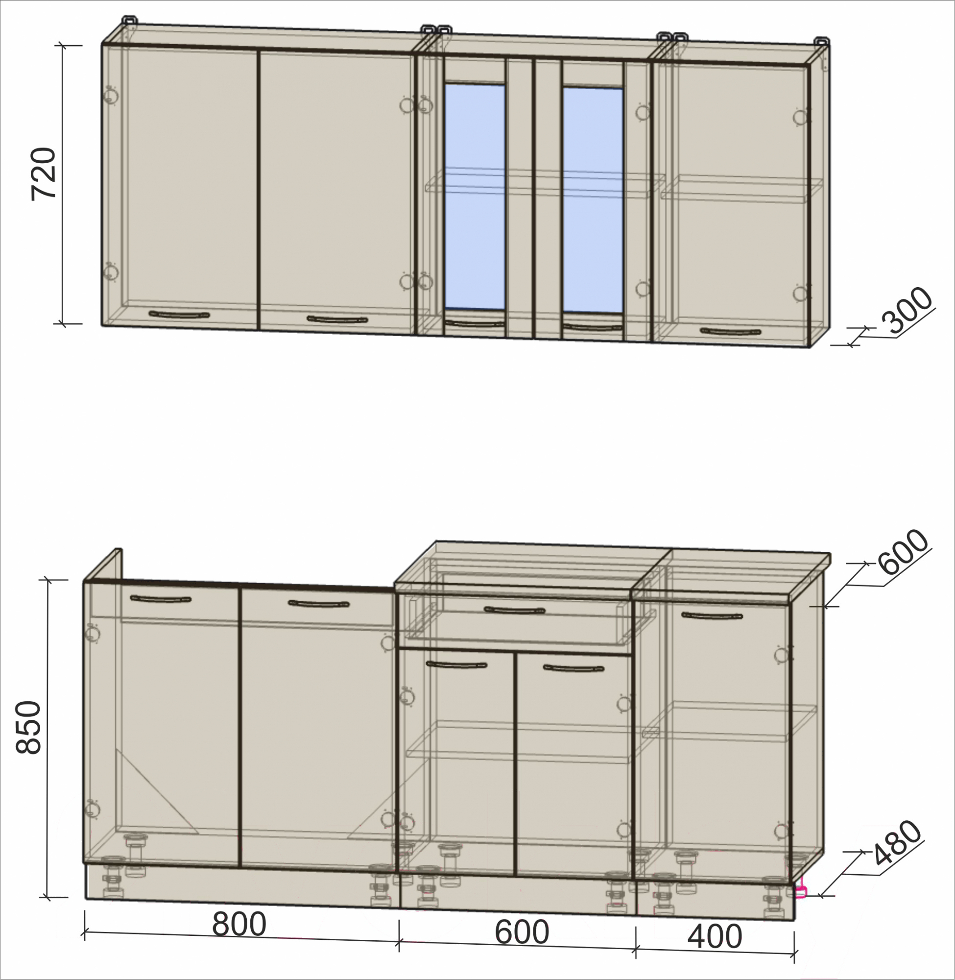 • Глубина нижних шкафов 60 см (46 см — глубина по корпусу)