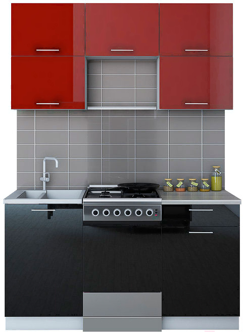 Готовая кухня Интерлиния Мила Gloss 50-15 (бордовый/черный)