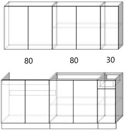 - Глубина нижних шкафов 60 см (48 см - глубина по корпусу)