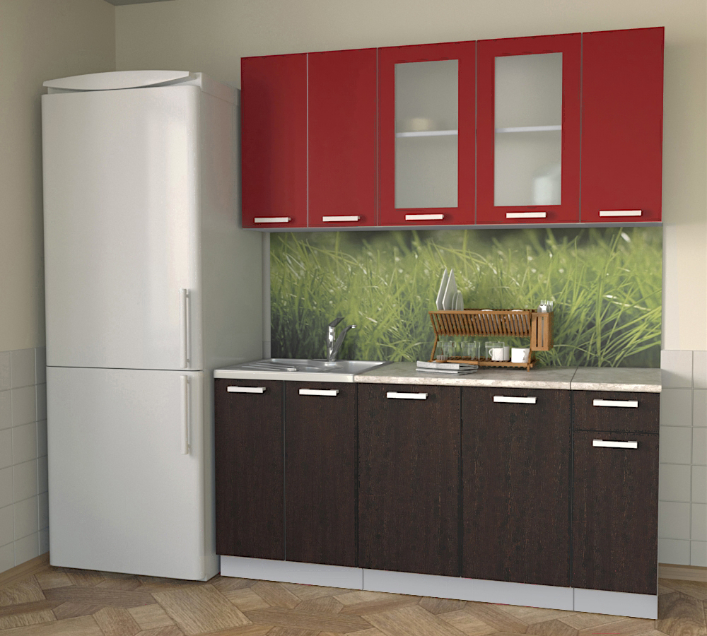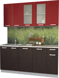 Готовая кухня Интерлиния Мила 17-60 (дуб венге/красный)