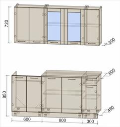 • Глубина нижних шкафов 60 см (48 см — глубина по корпусу)