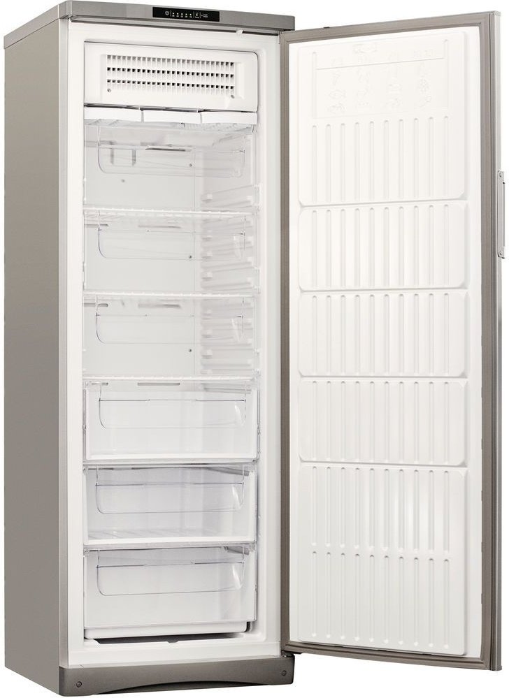 Морозильный шкаф; электронное управление; класс энергопотребления D; полезный объем 220 л; количество отделений 6; мощность замораживания 10 кг/сутки; количество компрессоров 1; система No Frost ; режим суперзаморозки; цвет серебристый.