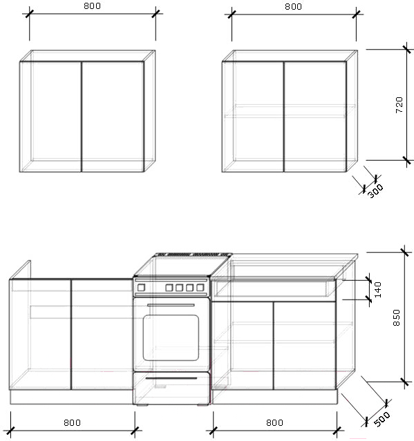 • Глубина нижних шкафов 60 см (48 см - глубина по корпусу)