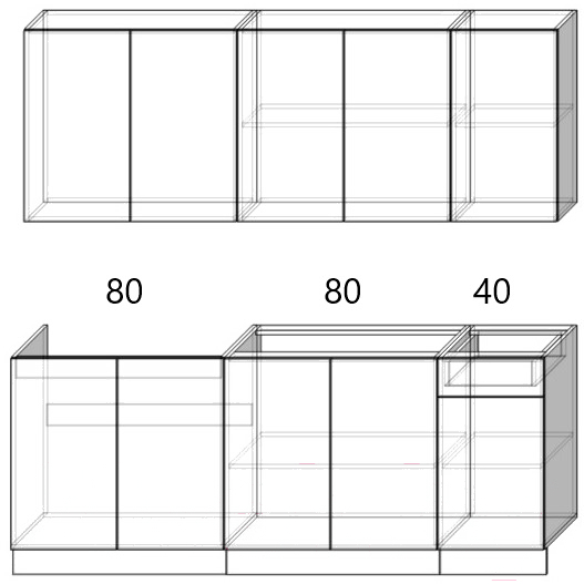 • Глубина нижних шкафов 60 см (48 см - глубина по корпусу)