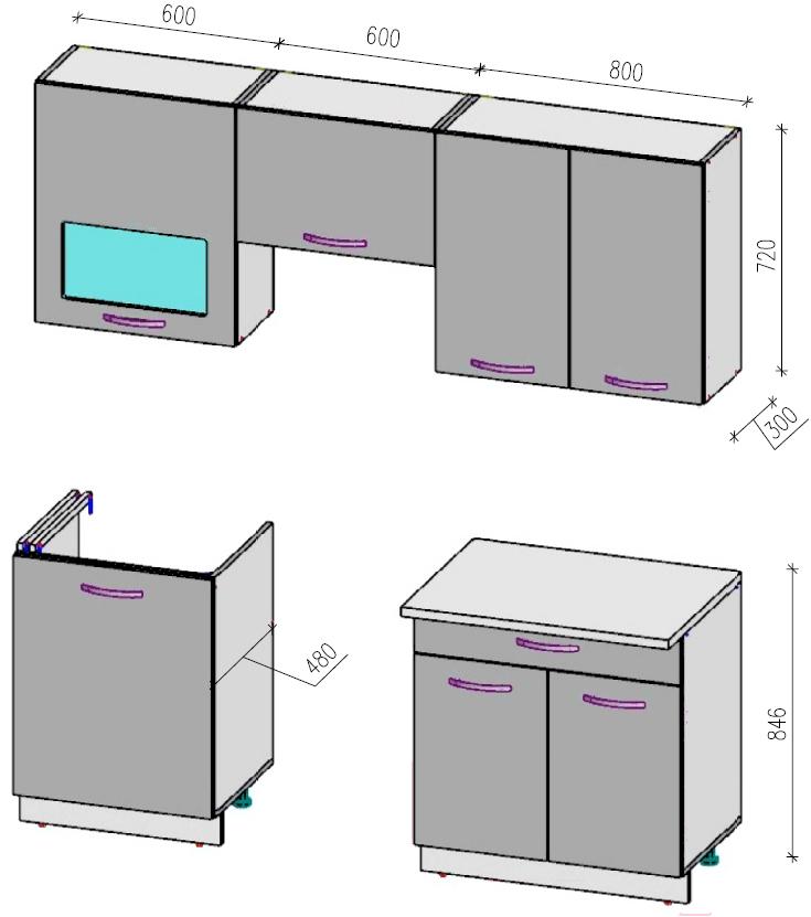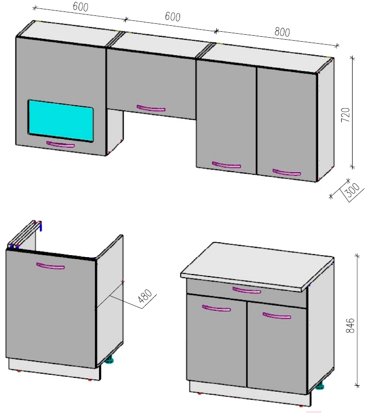 • Глубина нижних шкафов 60 см (48 см - по корпусу)