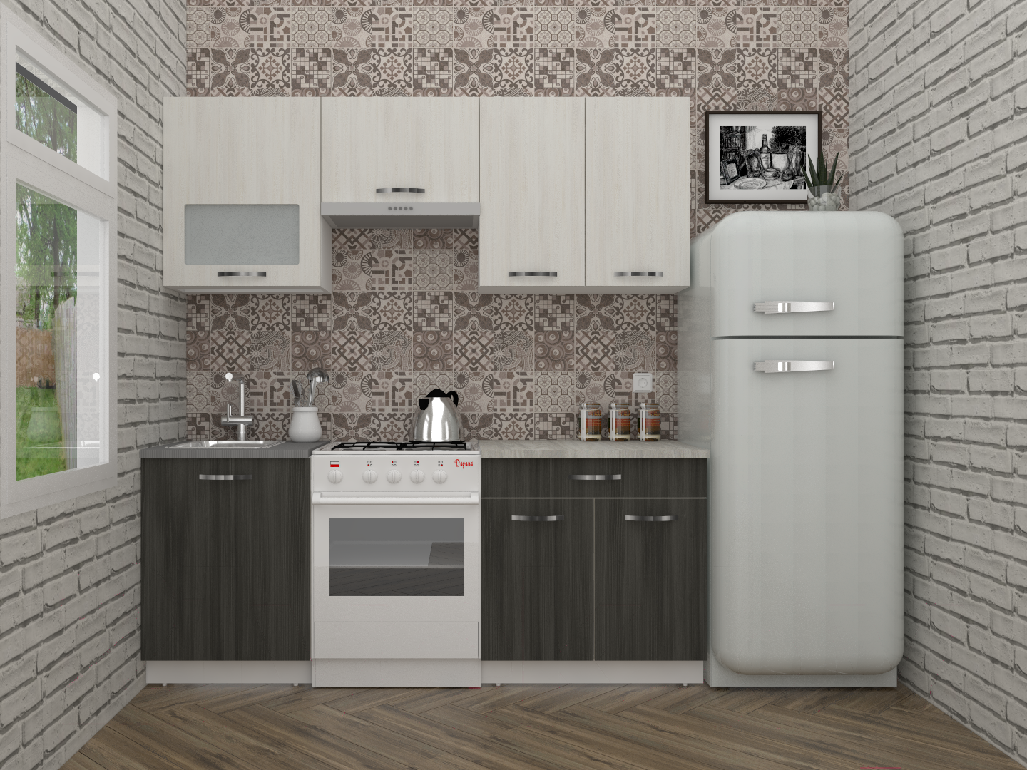 Готовая кухня ВерсоМебель Эко-6 2.0 (северное дерево светлое/северное дерево темное)