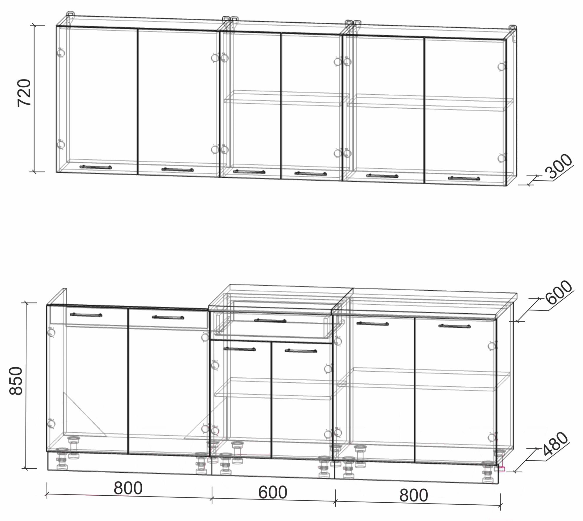 • Высота нижних шкафов 85 см