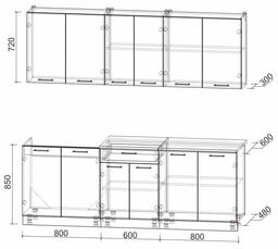 • Длина кухни 220 см