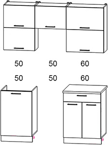 - Глубина нижних шкафов 60 см (46 см - глубина по корпусу)