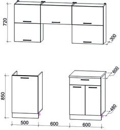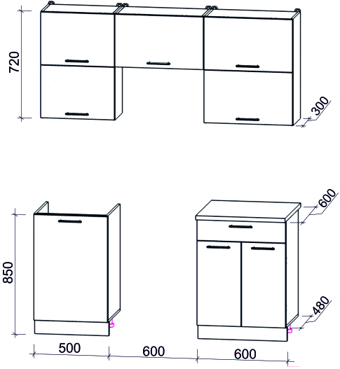 - Глубина нижних шкафов 60 см (46 см - глубина по корпусу)