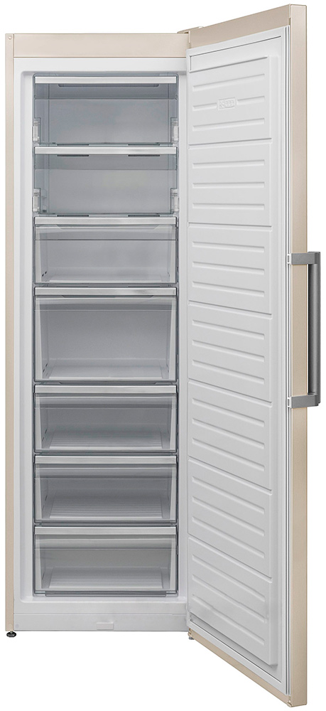 Морозильный шкаф; электронное управление; класс энергопотребления A+; полезный объем 280 л; количество отделений 7; мощность замораживания 21 кг/сутки; количество компрессоров 1; система No Frost ; режим суперзаморозки; цвет бежевый.