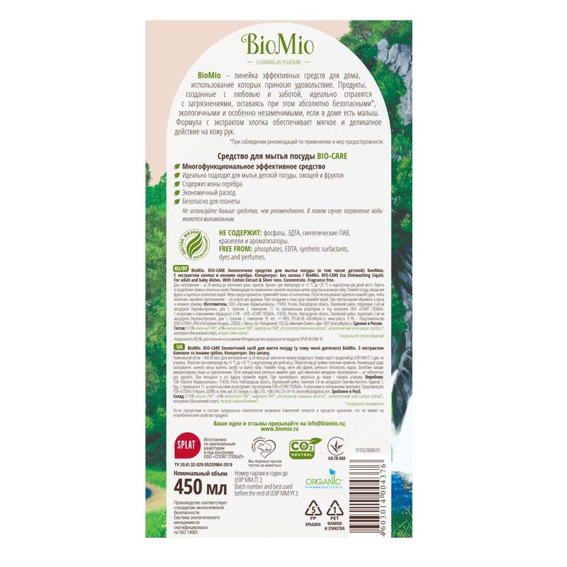 Средство для мытья посуды BioMio Bio Care 450 мл