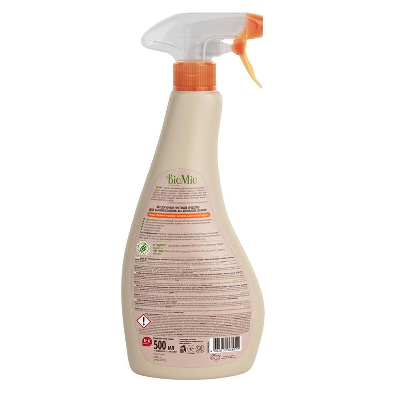 Средство для сантехники BioMio Bio Cleaner Грейпфрут 500 мл. Назначение: экологичное чистящее средство для ванной комнаты Bio-cleaner с эфирным маслом грейпфрута эффективно и бережно удаляет грязь, известковый и мыльный налет в ванных комнатах и душевых кабинах, придавая блеск раковине, ванне, керамической плитке и хромированным изделиям. Не повреждает поверхность. Специальная формула с ионами серебра обеспечивает антибактериальную защиту, экстракт хлопка оказывает мягкое действие на кожу рук, а эфирное масло грейпфрута поднимает настроение и дарит чувство бодрости. Отлично подходит для использования в домах с автономной канализацией. Не содержит хлор, фосфаты, агрессивные ПАВ, SLES, ПЭГ, синтетические отдушки и красители. Безопасно для планеты. Имеет экологический сертификат «Листок жизни». BioMio — линейка эффективных средств для дома, использование которых приносит удовольствие. Продукты, созданные с любовью и заботой, идеально справятся с загрязнениями, оставаясь при этом абсолютно безопасными, экологичными и особенно незаменимыми, если в доме есть малыш.Способ применения: поверните носик распылителя до символа «ON». Нанесите средство на очищаемую поверхность (для сильных загрязнений оставьте на несколько минут), протрите поверхность губкой или щеткой и смойте водой. По окончании применения поверните носик распылителя в положение «OFF».Меры предосторожности: хранить вдали от детей. Не употреблять в пищу. Хранить отдельно от пищевых продуктов. При попадании в глаза промыть большим количеством воды. Не глотать. Использовать строго по назначению.Состав: <5% неионогенные ПАВ, амфотерные ПАВ, анионные ПАВ, молочная кислота, гликолевая кислота, эфирное масло грейпфрута, консервант, цитрат серебра, экстракт хлопка, лимонен.Условия хранения: хранить при температуре от +5 °С до +25 °С. Беречь от детей.Срок годности: 36 месяцев.