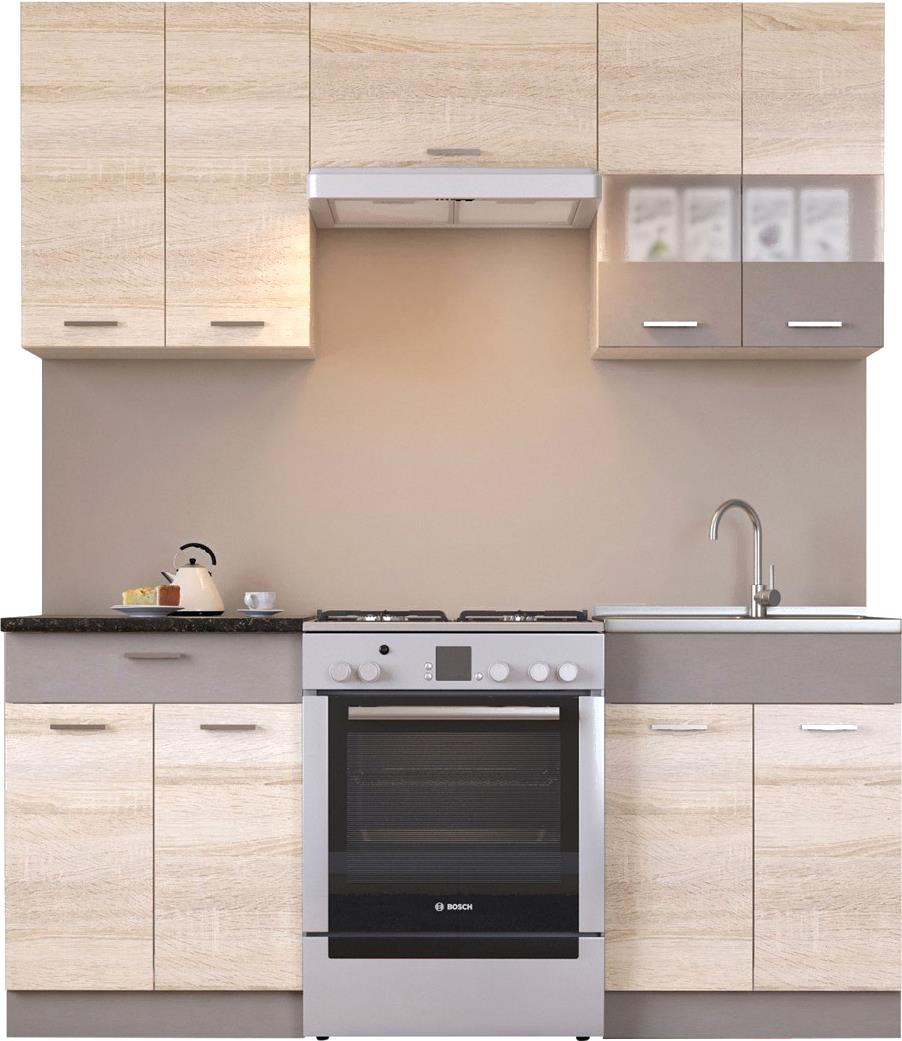 - Цвет верхних фасадов бежевый (латте), дерево светлое (дуб сонома)