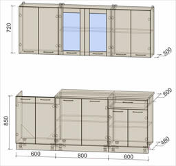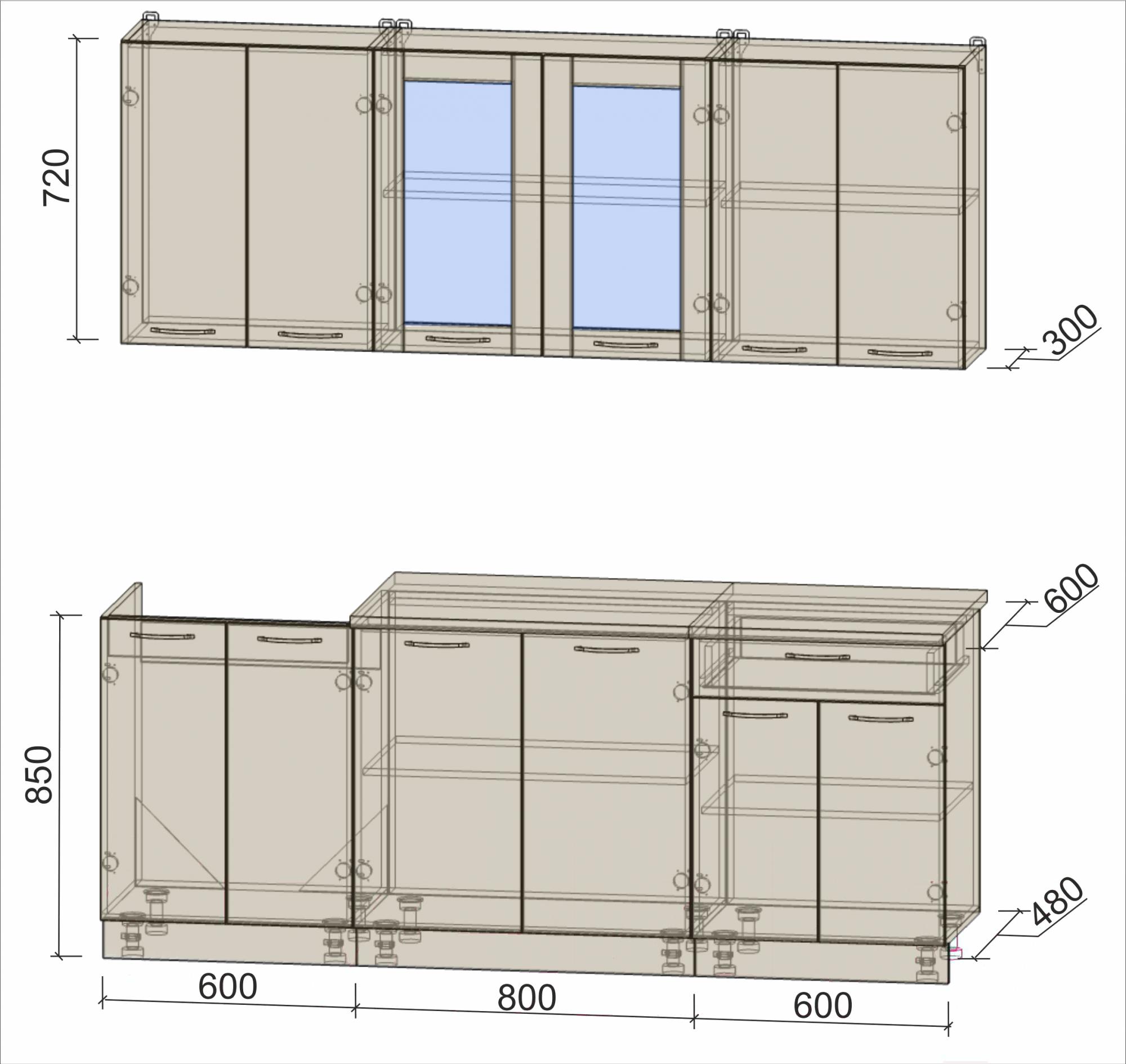 • Глубина нижних шкафов 60 см (48 см — глубина по корпусу)