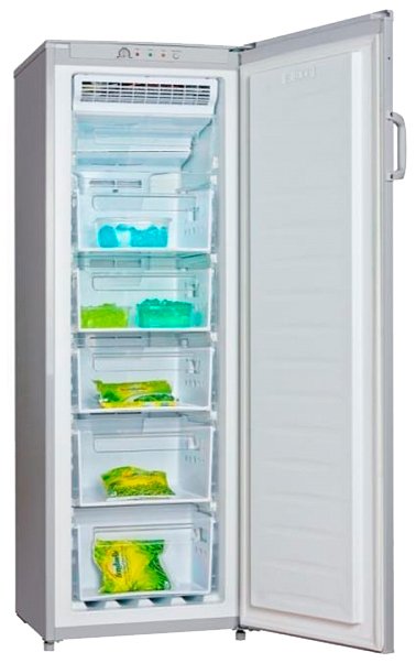Морозильный шкаф; электромеханическое управление; класс энергопотребления A+; полезный объем 183 л; количество отделений 6; мощность замораживания 13 кг/сутки; количество компрессоров 1; система No Frost ; режим суперзаморозки; цвет серебристый.