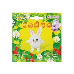 Эта веселая фигурка – оригинальное украшение и отличный подарок. Рукодельница старше 8 лет легко и с увлечением сделает фигурку с помощью набора «Зайка» – скрутит помпоны из пряжи с помощью шаблонов и сплетёт лапки и ушки из бисера по подробной схеме. Фигурка легко превратится в брошку, если найти и прикрепить к ней маленькую булавку. Размер готового изделия: 40х60 мм.