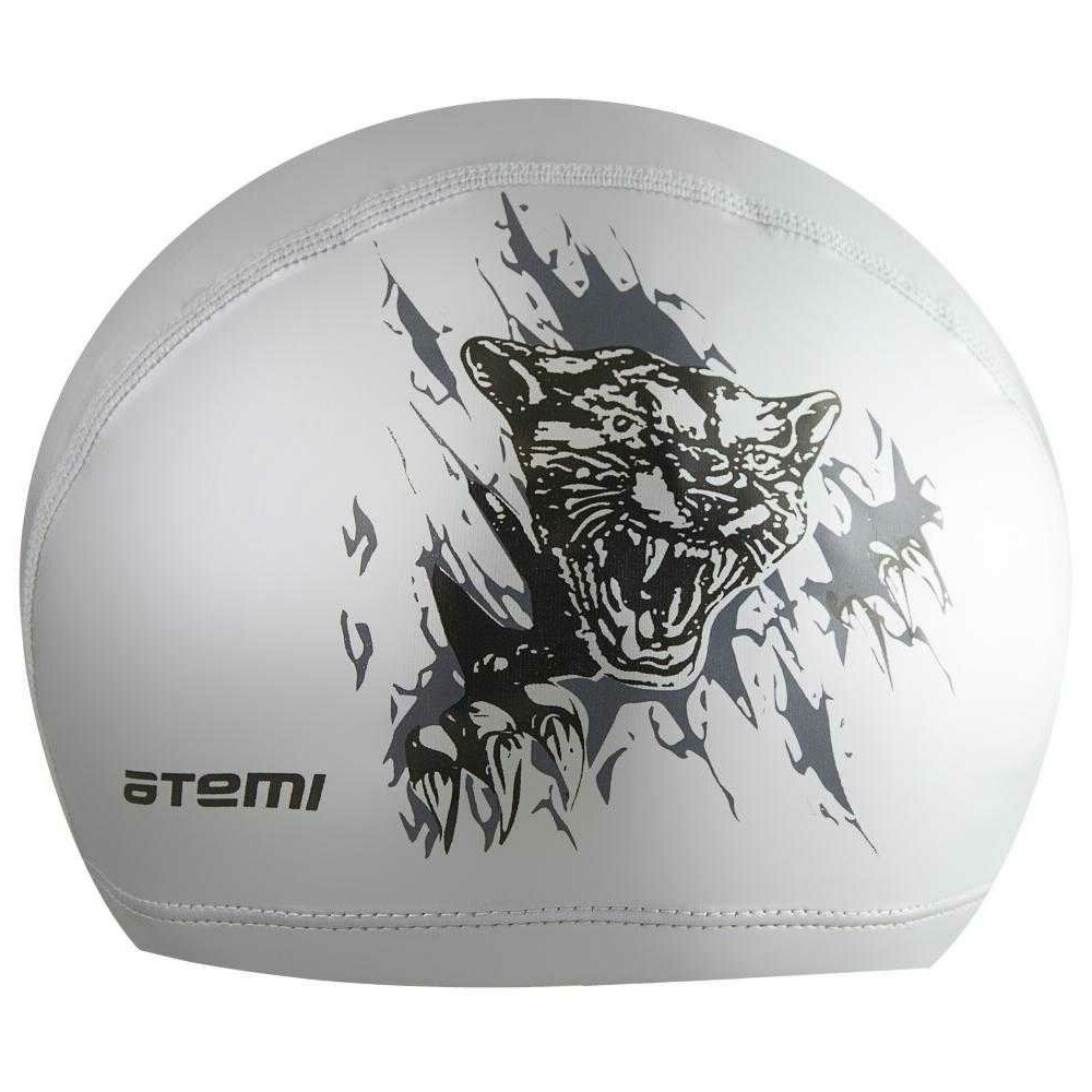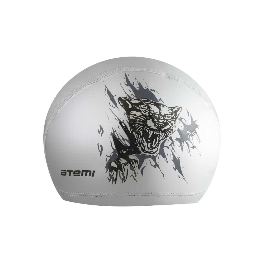 Шапочка для плавания тканевая с пу покрытием, серебро, принт, Atemi Pu 304