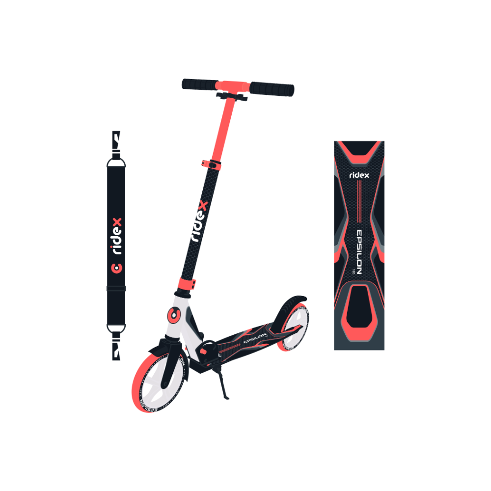 Одна из самых популярных моделей самокатов для передвижения по городу. Городской самокат Epsilon сочетает стиль, комфорт и надежность. Полиуретановые колеса диаметром 180 мм отвечают за скорость самоката, регулируемый руль позволяет настроить удобную высоту, а широкая дека добавляет стабильности при езде на самокате. Самокат практичен в использовании и легко переносится благодаря складному механизму между рулем и декой. Для удобства транспортировки у модели имеется фирменный ремешок для переноски. Прочная цельная алюминиевая дека обеспечивает надёжность модели и увеличивает срок её эксплуатации. Дизайн самоката выполнен в трёх различных вариантах, сочетающих лаконичность и стиль, что позволяет выбрать подходящую именно вам модель. Стильный дизайн, удобство в эксплуатации и эффективность на дороге – вот слагаемые успеха Epsilon. Характеристики: Состав конструкции: 100% высокопрочный алюминий Колеса, диаметр (мм): 180 Колеса, материал: полиуретан Руль, высота (см): 51/59/67 Грипсы, материал: резина Дека, ширина (см): 13 Дека, длина (см): 54 Подшипники: АВЕС-7 Система складывания: есть Амортизатор: нет Максимальный вес пользователя (кг): 100 Вес брутто: 4.75 кг.