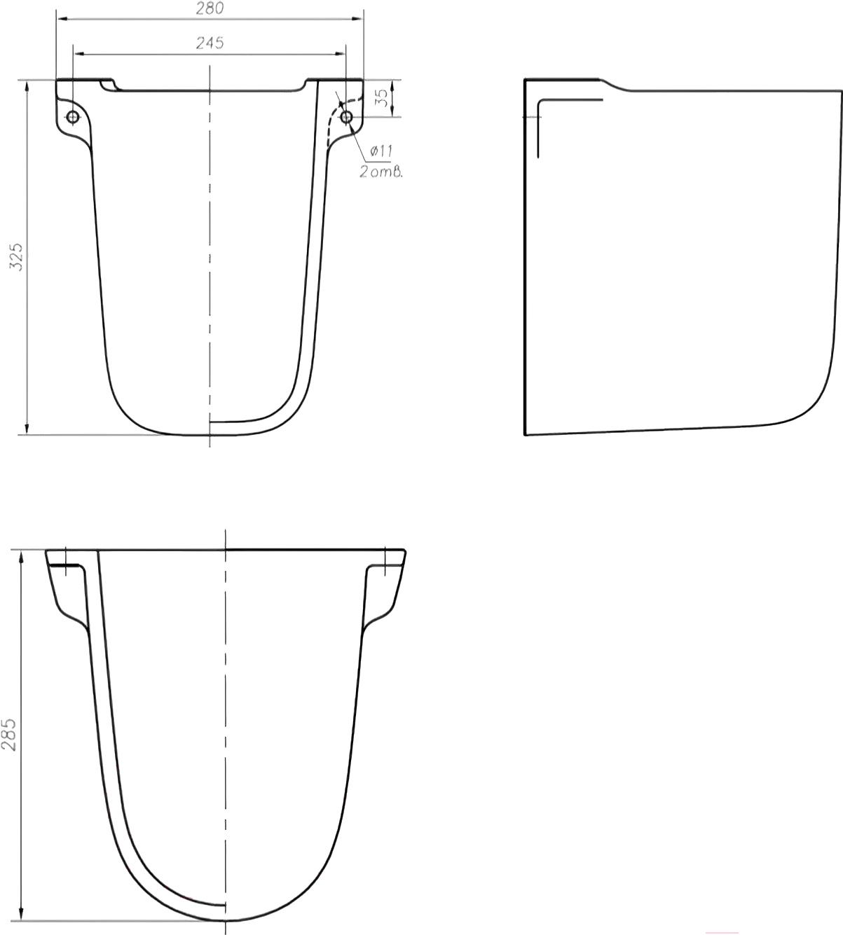 • Форма полукруглая