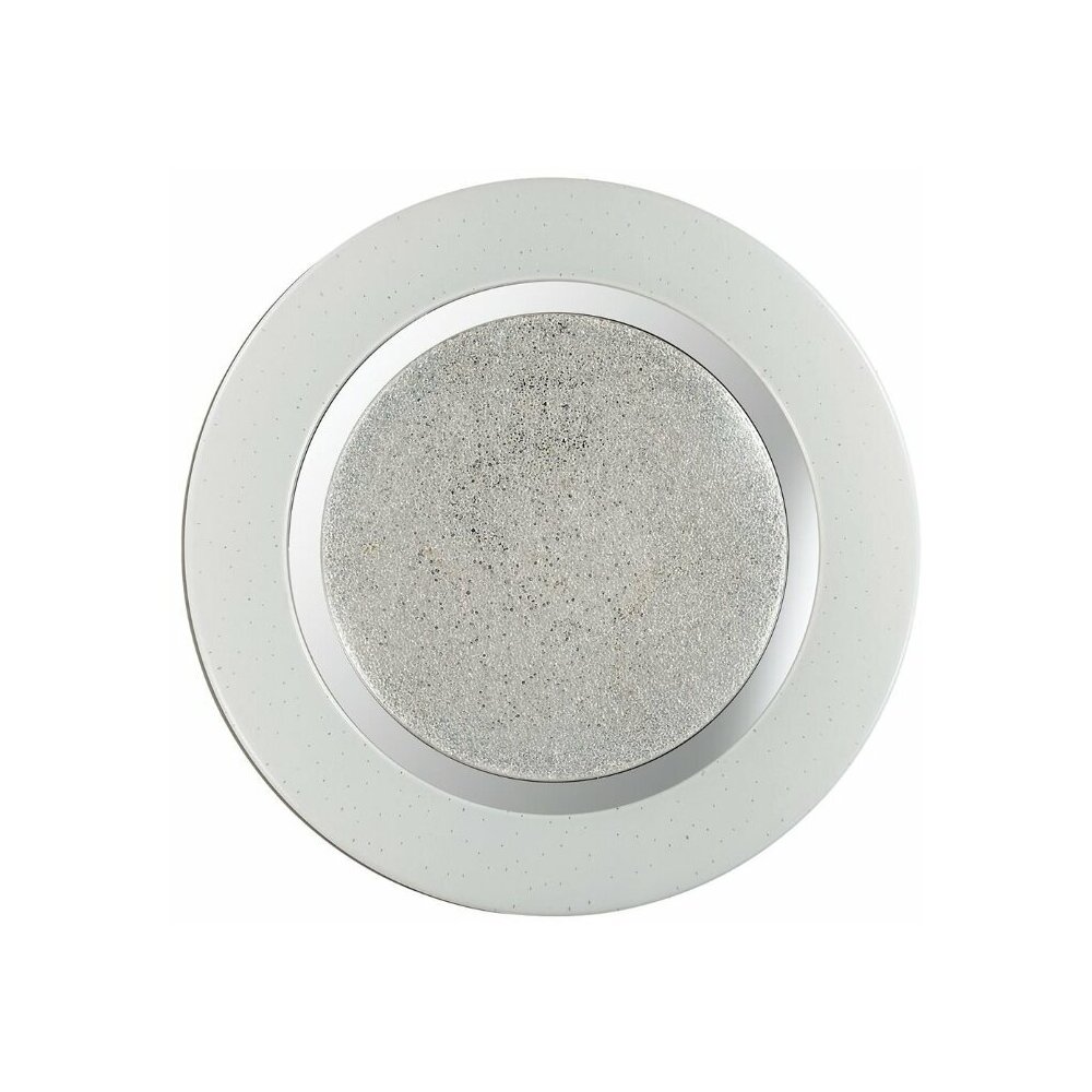 Светильник 2079/DL серии PINOLA cостоит из металлического основания (базы) и пластикового рассевателя. Материал рассеивателя - высококачественный акрил белого цвета с глянцевой поверхностью, обеспечивающий светильнику равномерное рассеивание и хорошее светопропускание. Форма плафона: круглая, декорирована кантом цвета хром, пластиковой крошкой, рисунком в виде прозрачных точек, которые придают включенному светильнику красивый эффект "звездного мерцания" и переливания. Степень защиты IP43 позволяет использовать светильник в определенных зонах влажных помещений. В комплект входит заменяемый LED модуль с линзами, мощностью 48Вт, которая соответствует лампе накаливания 350Вт. А также пульт ДУ, с помощью которого осуществляется плавное изменение цветовой температуры 3000-6000К, изменение яркости, переход в режим переключения теплого//белого/холодного/ночного света.