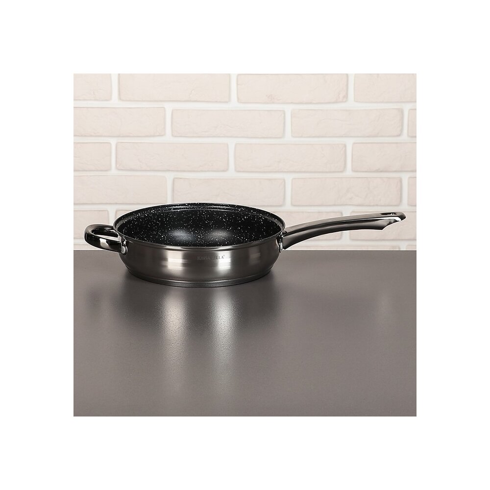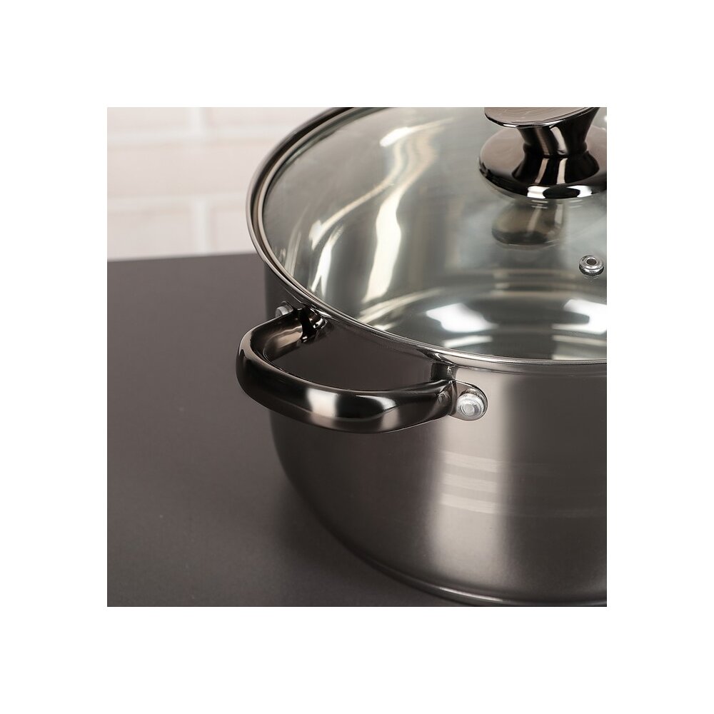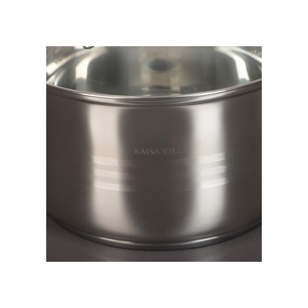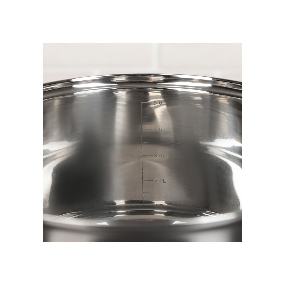Набор посуды из нержавеющей стали поможет хозяйке готовить вкуснее и разнообразнее. Особенности изделий: 5-слойное капсульное дно; быстрое распределение тепла; высокопрочная сталь; большие и удобные ручки; мерные шкалы для дозирования продуктов. Изделия можно мыть в посудомоечной машине. Набор подходит для газовых и электрических, в том числе стеклокерамических, галогеновых, индукционных плит.