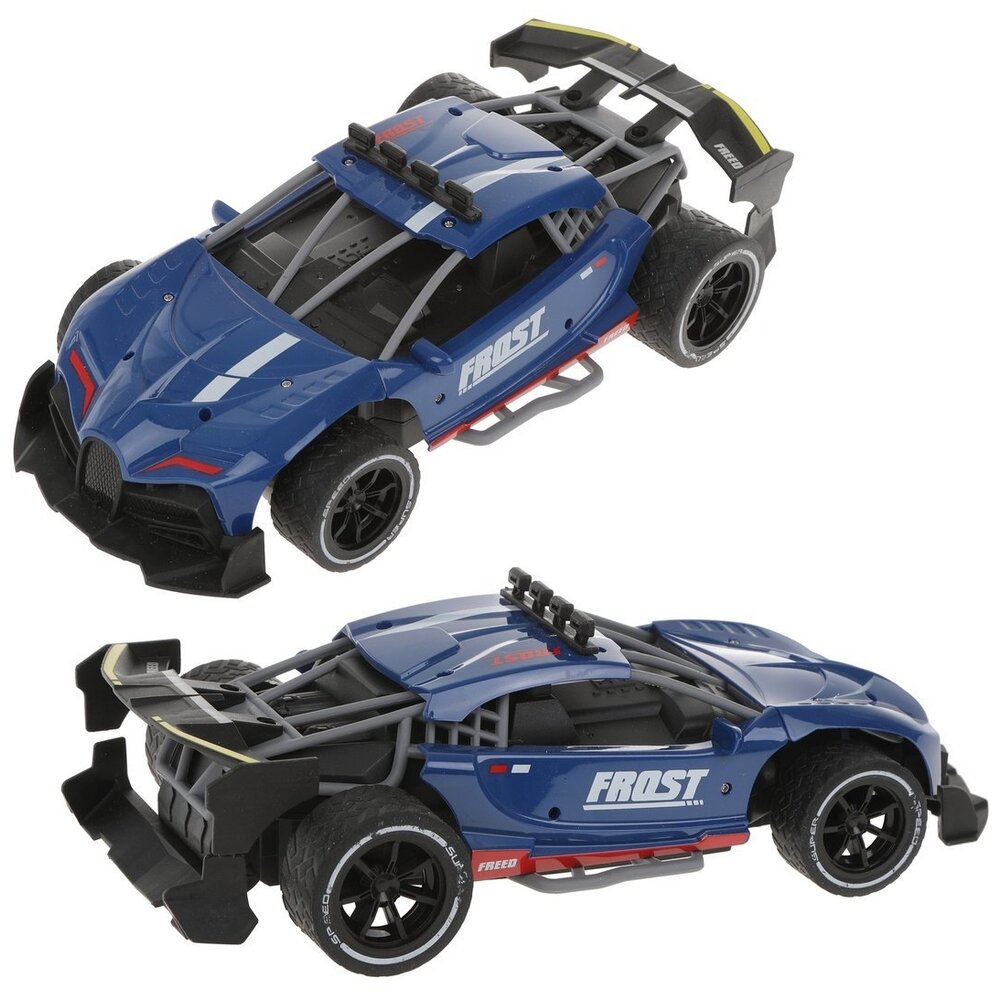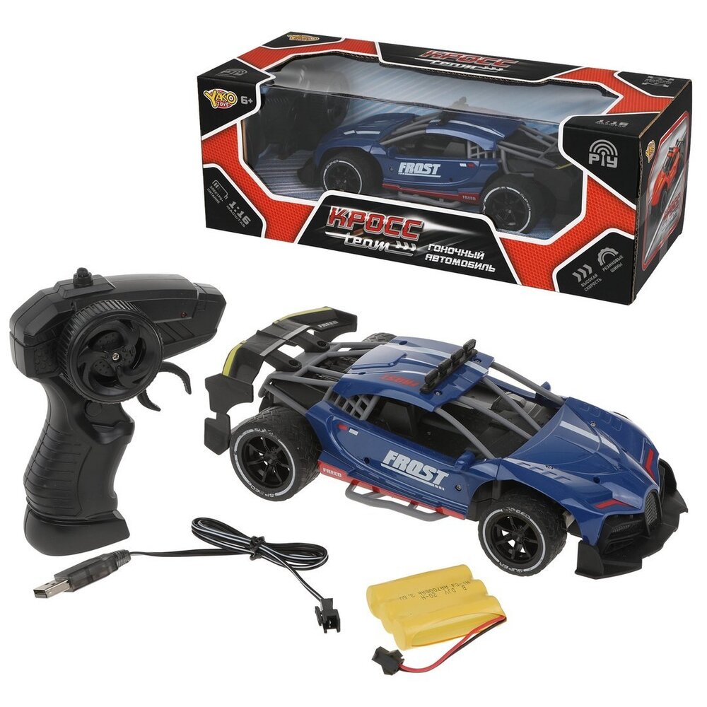 Скоростная машина. Скорость-примернор 10 км / час Движение во все стороны Дуги и спойлер выполнены из мягкого противоударного пластика Резиновые шины (не полые) Питание пульта управления: 2*АА (нет в комплекте) Питание машины-аккумулятор 3,6V (в комплекте); USB шнур Размер машины: 24*12*7 см Масштаб 1:16