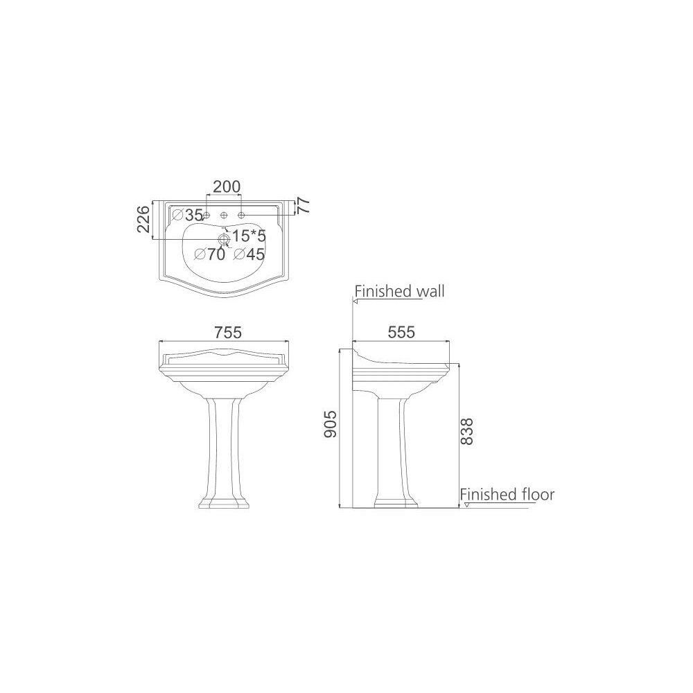 - Размеченные отверстия под смеситель 2, расположение в центре