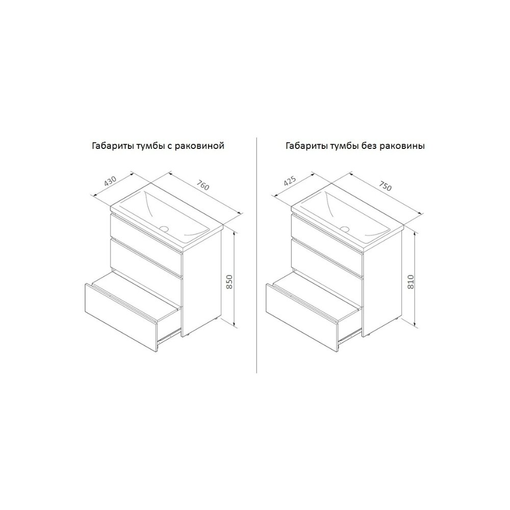 Тумба с раковиной AM.PM GEM S M91-FSX0752-WC0752OF напольная, 75 см, 3 ящика, светлый дуб