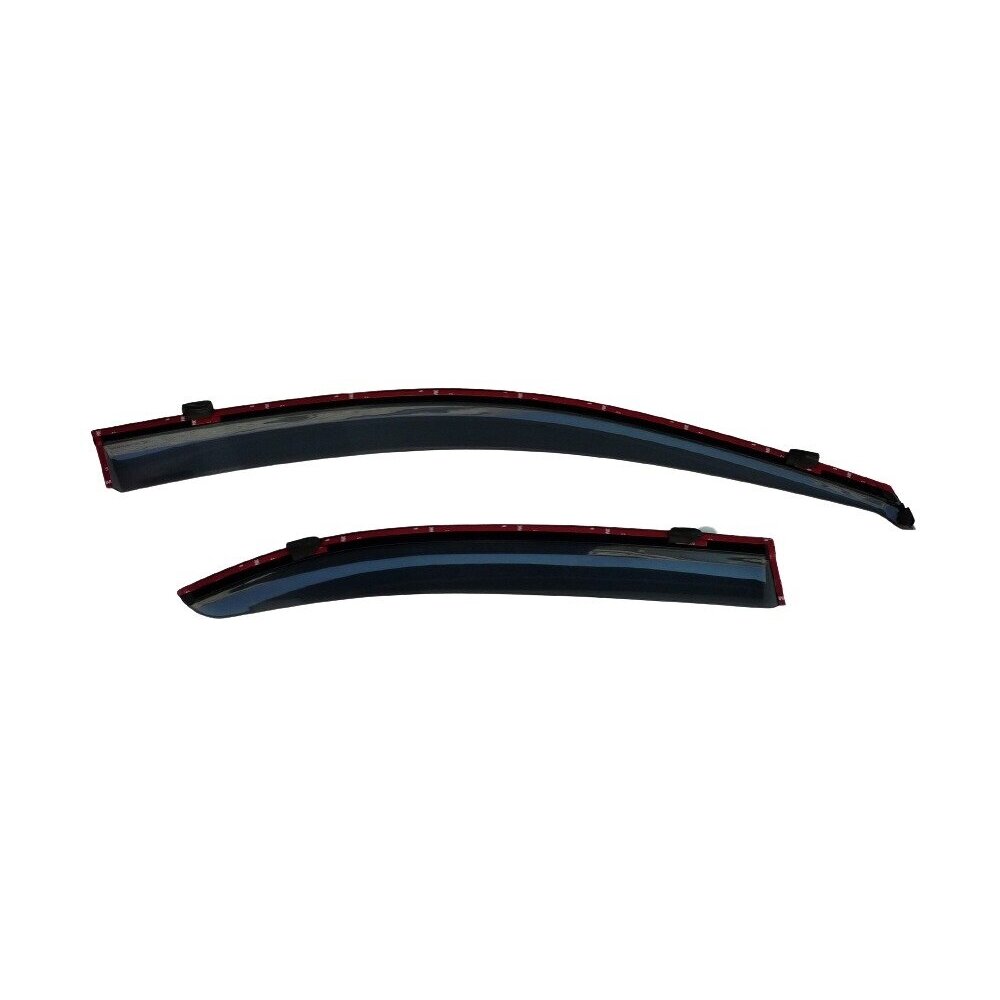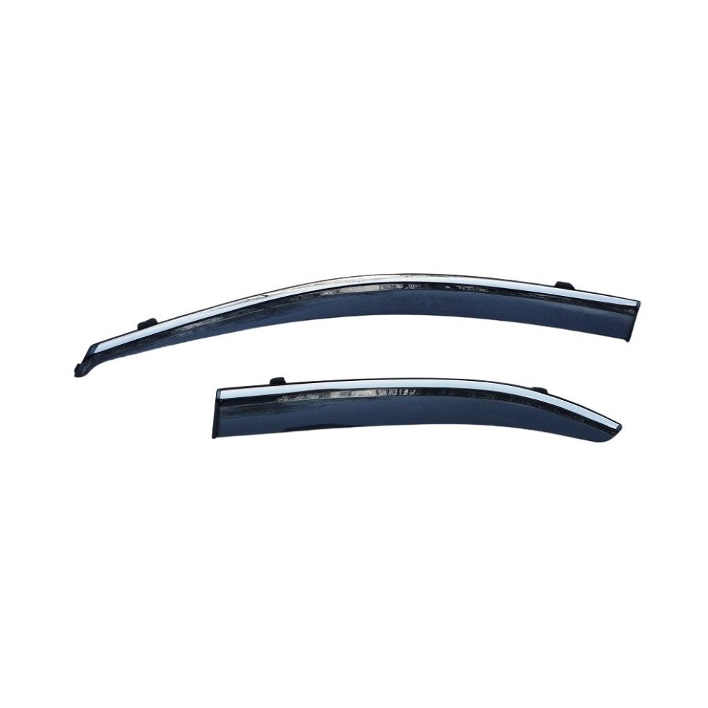 Дефлекторы изготовлены из акрилового пластика. Устанавливаются на верхнюю часть двери с помощью скотча и скоб.