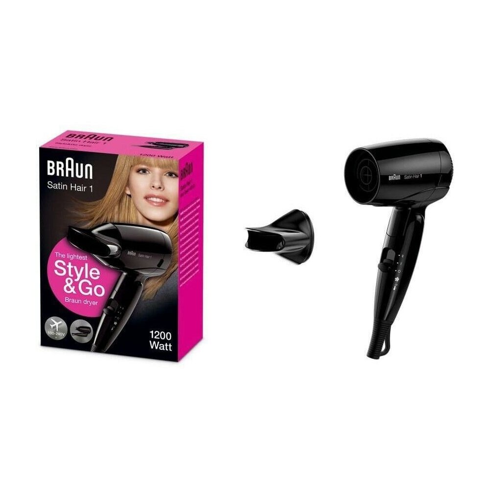 Фен Braun Satin Hair 1 StyleGo. Путешествуй со стилем. Самый легкий фен в линейке Braun StyleGo. Этот складной дорожный фен легко помещается в сумочку и является очень компактным. Он дает свободу сушить и укладывать волосы в любое время и в любом месте. Профессиональная насадка для тщательной и точной укладки. Дорожный фен Braun Satin Hair 1 StyleGo работает с источником инфракрасного тепла, который предотвращает горячие точки и пересушивание. Разные страны, разное напряжение: Дорожный фен Braun Satin Hair 1 StyleGo подходит к различным розеткам всех стран. Широкий диапазон входного напряжения для высокой эффективности в любом месте. 2 тепловые настройки-универсальность (подходит для сушки и укладки).