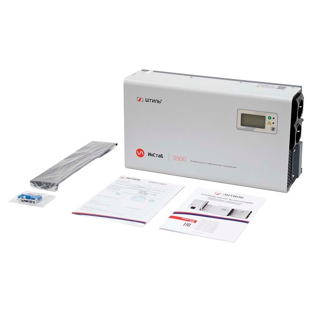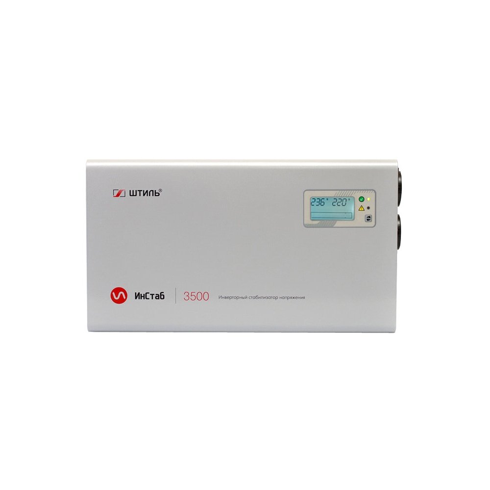 Штиль ИнСтаб IS3500 инверторный стабилизатор, работающий по принципу двойного преобразования. Не зависимо от искажений в сети всегда обеспечивает чистую синусоиду выходного напряжения. Идеально подходит для защиты очень чувствительной к напряжению техники, такой как, газовое и медицинское оборудование, компьютеры, сервера и акустические системы и т.д. Стабилизатор достаточно мощный. Суммарно, можно подключить нагрузку до 3,5 кВА или 3 кВт. Работает бесшумно с высокой точностью. Погрешность выходного напряжения не превышает 2% в диапазоне напряжений на входе от 90В до 310В. В условиях кратковременного отключения электричества, в течении 200 мс, может обеспечить бесперебойную работу подключенным к нему устройствам. Производится в России. Расчетный срок службы 10 лет. Гарантия 2 года.