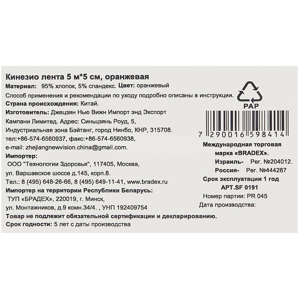 Кинезио тейп BRADEX 5 м х 5 см, оранжевый