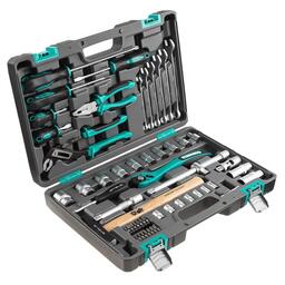 Набор инструментов разработан специально для автолюбителей и центров технического обслуживания. Каждый этап производства контролируется в соответствии с международными стандартами. Набор укомплектован масло- и бензостойкой двухкомпонентной трещоткой. Головки и комбинированные ключи изготовлены из хромованадиевой стали, придающей инструменту исключительную твёрдость в сочетании с лёгкостью. Биты, биты-вставки и отвёртки производятся из стали S2, улучшающей свойства инструмента. Все наборы упакованы в кейс, изготовленный из жёсткого противоударного пластика, с металлическими застёжками. Набор инструментов пригодится не только в автомобиле: с его помощью можно проводить бытовой ремонт дома и на даче, ремонт бытовых конструкций и садовой техники. На все наборы инструментов Stels предоставляется пожизненная гарантия.