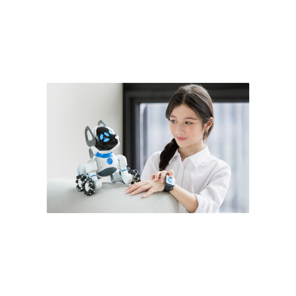 Робот-щенок CHiP — активная собака с искусственным интеллектом. Ориентируется в пространстве с помощью датчиков, умеет играть. Управлять можно с помощью приложения, браслета и шара.