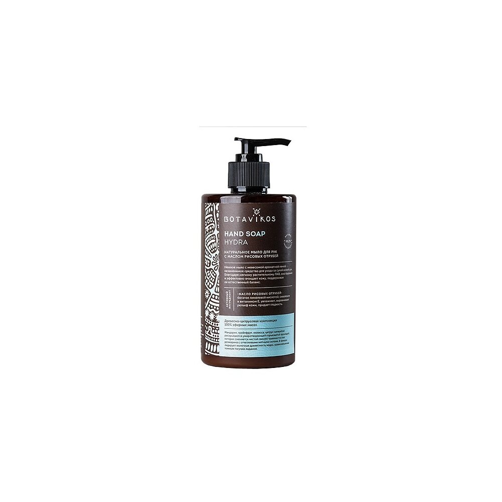 Натуральное жидкое мыло из коллекции Hydra с невесомой ароматной пеной — незаменимое средство для ухода за сухой кожей рук. Благодаря мягкому растительному ПАВ оно бережно и эффективно очищает кожу, поддерживая её естественный баланс. Активный компонент — масло рисовых отрубей, богатое линолевой кислотой, скваленом и витамином Е, которое увлажняет, выравнивает рельеф кожи, придаёт гладкость.<p>Эфирные масла усиливают увлажняющие свойства мыла и наделяют его приятным древесно-цитрусовым ароматом. Мандарин, грейпфрут, мелисса, цитрус раскрываются умиротворяющей горьковатой прохладой, которая сменяется чистой свежей травянистостью розмарина с отчётливыми мятными нотами. В финале лидирует молочная древесность кедра, уравновешенная томным тягучим ладаном.</p>