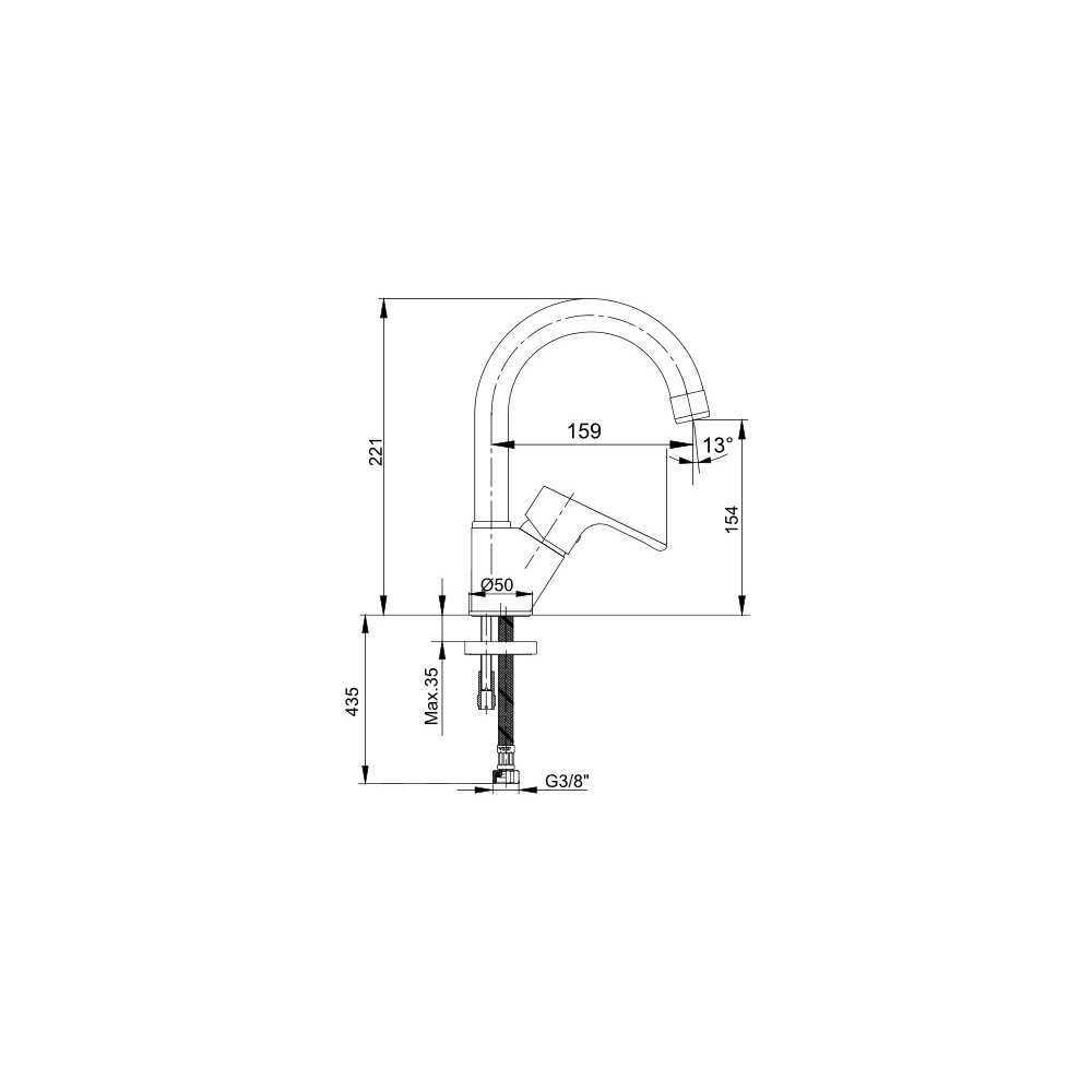 - Длина излива 159 мм.