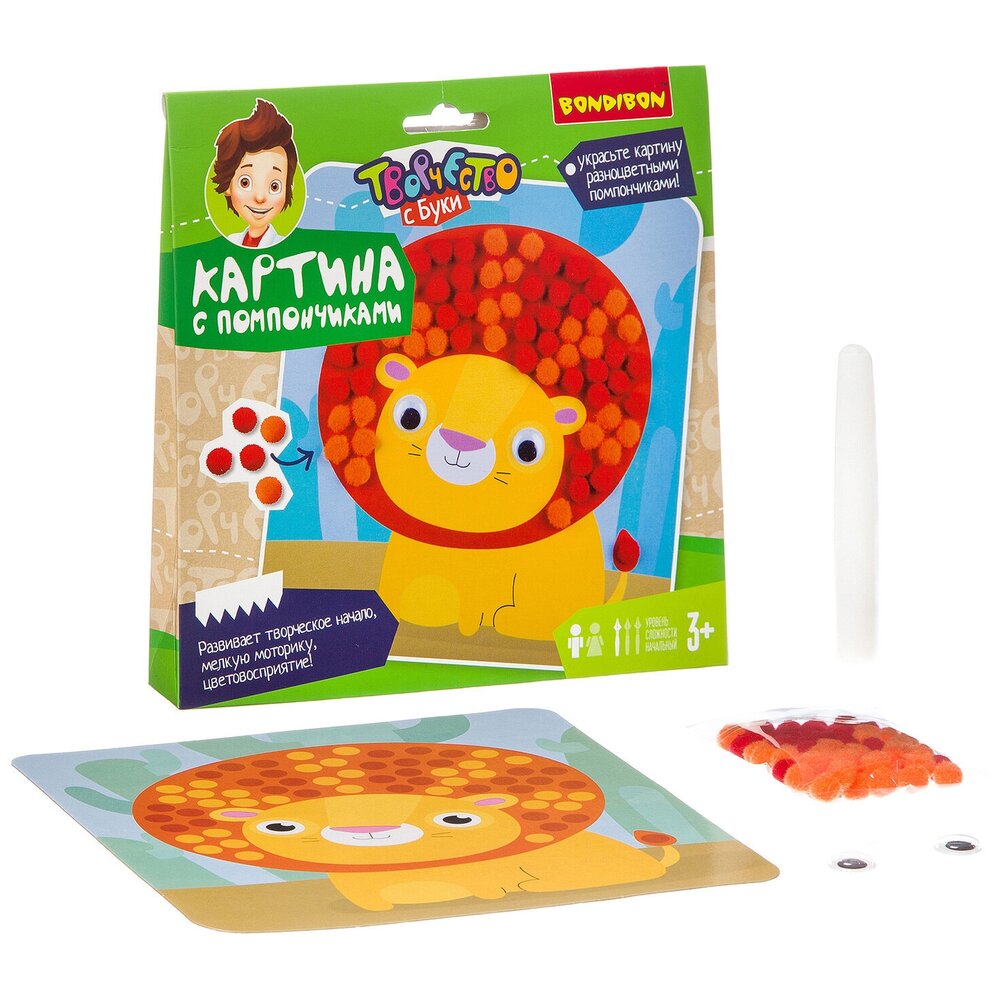 BONDIBON Набор для творчества Картина с помпончиками Львенок (ВВ3292)