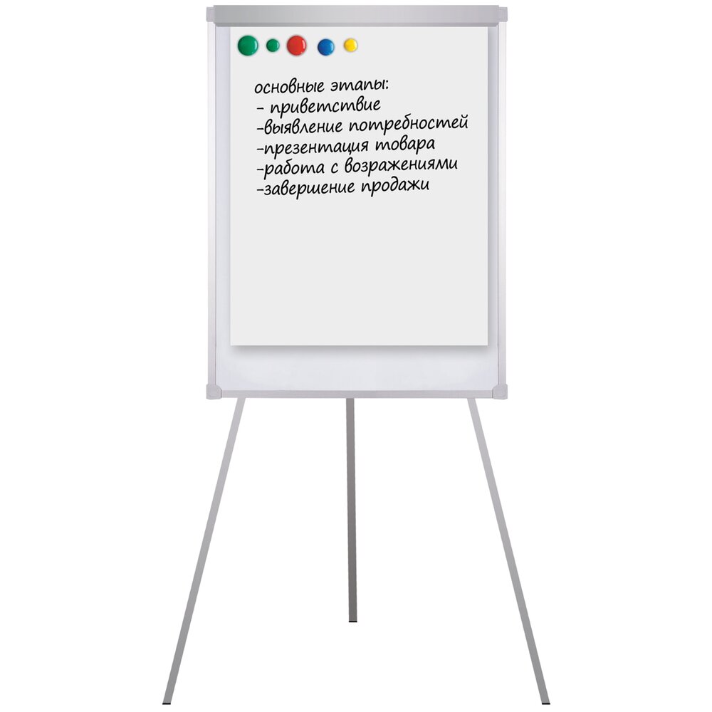 Доска-флипчарт магнитно-маркерная BRAUBERG на треноге 236160 100х70 см, белый/хром