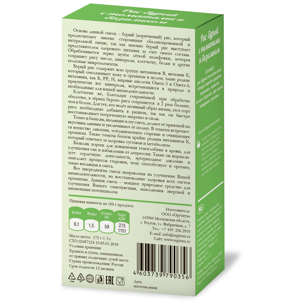 Оргтиум Рис бурый с томатами и базиликом 175 г