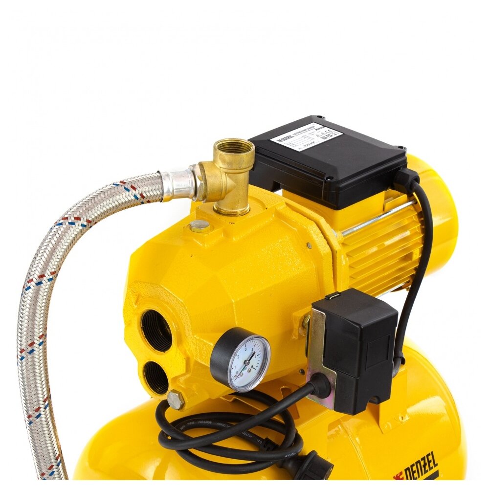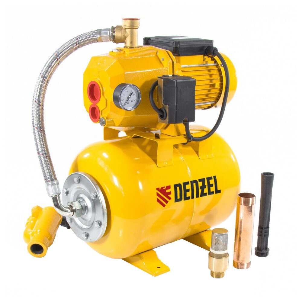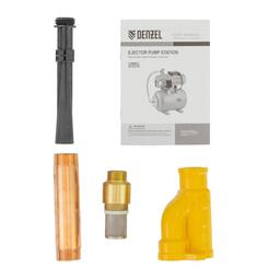 Эжекторная насосная станция Denzel PSD800C подходит для подачи чистой воды в частные дома и коттеджи и нормализации нагрузки в системе водоснабжения квартир. Перекачивает воду из скважин, колодцев и естественных водоемов глубиной до 20 м. За счет двигателя мощностью 800 Вт обеспечивается напор высотой до 45 м и производительность до 40 л/мин. Ключевая особенность станции – наличие внешнего эжектора. Именно он позволяет работать с большими глубинами и препятствует возникновению кавитации, которая приводит к разрушению насосной части.<br />Преимущества. Автоматическая работа – насосная станция не требует обслуживания, поскольку самостоятельно включается и отключается по мере расходования воды в ресивере. Защита от перегрева – термодатчик в обмотке двигателя срабатывает при достижении максимально допустимой температуры и отключает питание, предотвращая поломку электродвигателя. Степень защиты от влаги - IPX4. Манометр позволяет контролировать давление воды на выходе. Функция регулировки давления в диапазоне 1,5-3 бар обеспечивает автоматическое включение и отключение двигателя при достижении соответствующих значений. Корпус из чугуна обеспечивает надежную защиту от механических повреждений, позволяет прочно зафиксировать насос и способствует снижению уровня шума. Резервуар для накопления воды объемом 24 литра в случае отключения электричества в доме обеспечит водой на нужды первой необходимости и позволяет экономно расходовать электроэнергию. Пневмоклапан обеспечивает безопасное наполнение ресивера сжатым воздухом и стабильную подачу воды к потребителю. Погружной эжектор, представляющий собой струйный насос, соединяется с насосной станцией двумя трубами. Это позволяет достичь заявленной глубины всасывания 20 метров. Две широкие опоры имеют отверстия для крепления насоса и минимизации вибраций.