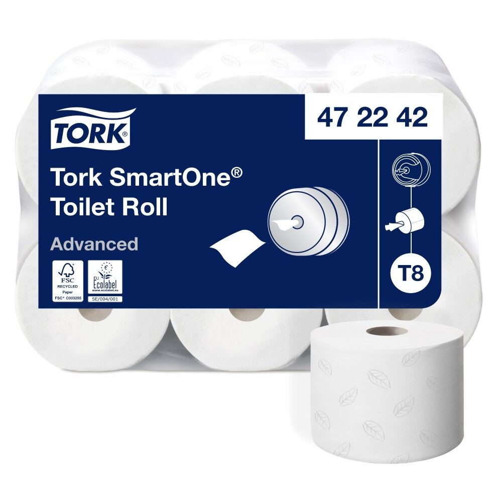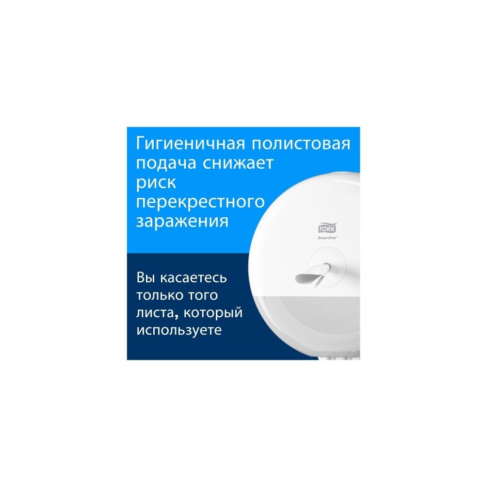 Диспенсер для туалетной бумаги Tork SmartOne — уникальная система, обеспечивающая гигиеничный полистовой отбор и до 40% экономии по сравнению с традиционными большими рулонами. Мини-рулоны Tork SmartOne высокой ёмкости подходят для туалетных комнат с низкой и средней посещаемостью, к которым предъявляются высокие требования. Рулон высокой ёмкости с полистовой подачей сокращает время обслуживания и обеспечивает постоянное наличие туалетной бумаги. Благодаря быстрому растворению и снижению расхода риск закупорки канализационных труб сводится к минимуму. Мягкая бумага имеет высокую степень белизны и фирменный рисунок Tork в форме листа. Система удаления втулки SmartCore гарантирует быструю и простую перезаправку.